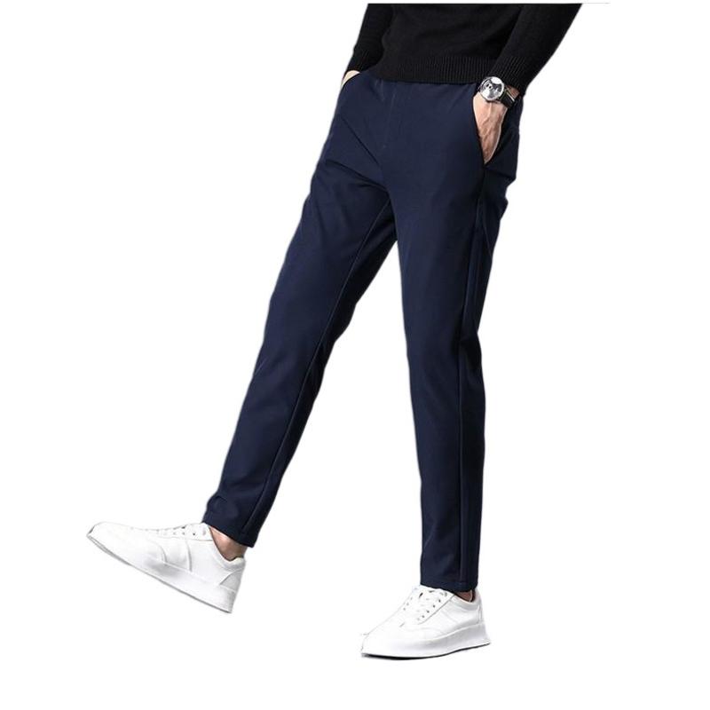 Romoncy Pants Men Trends Up straight sleeves Loose Western Clothing Pants Elastic Men Pure Color Free Ironing Casual Long Pants