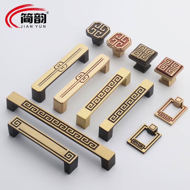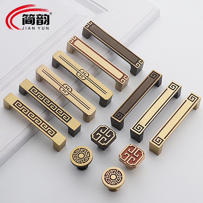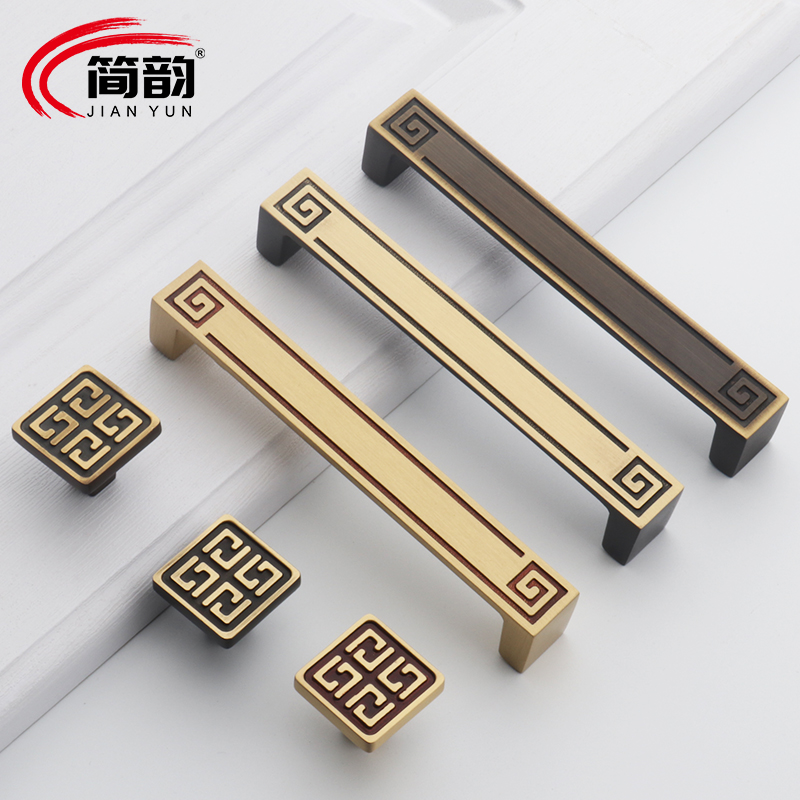 Light luxury brass handle door retro Chinese copper handle antique cupboard cabinet drawer pure copper handle