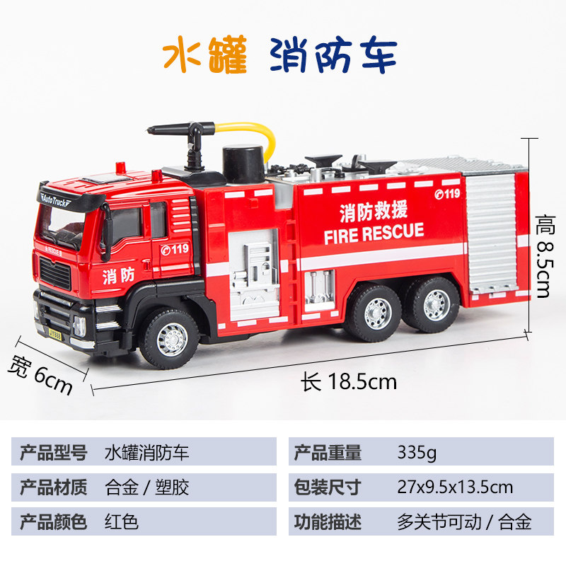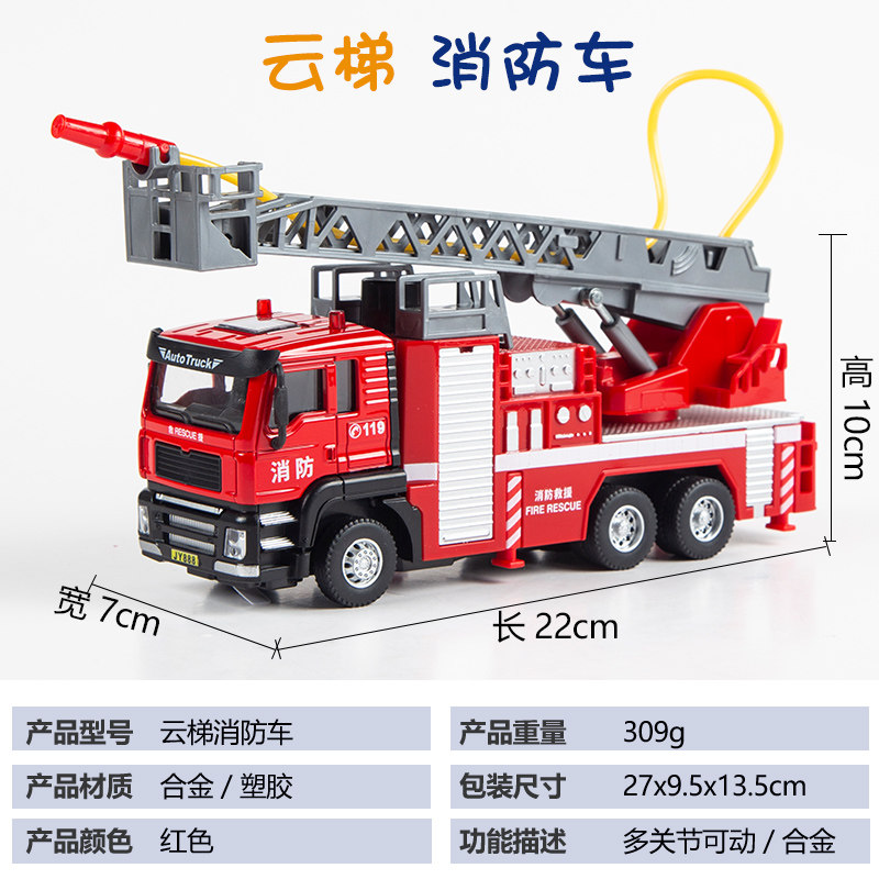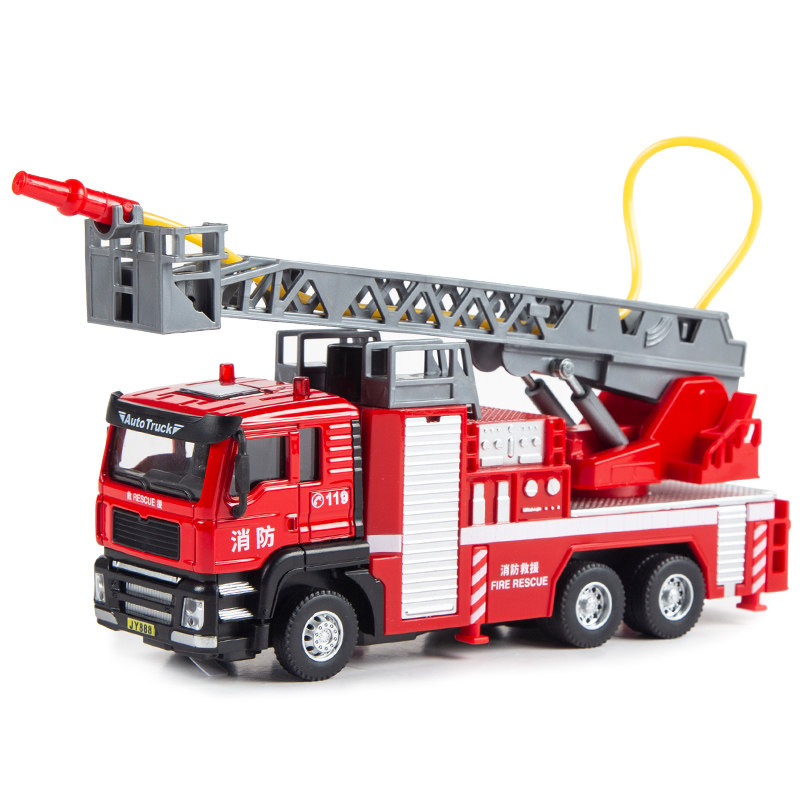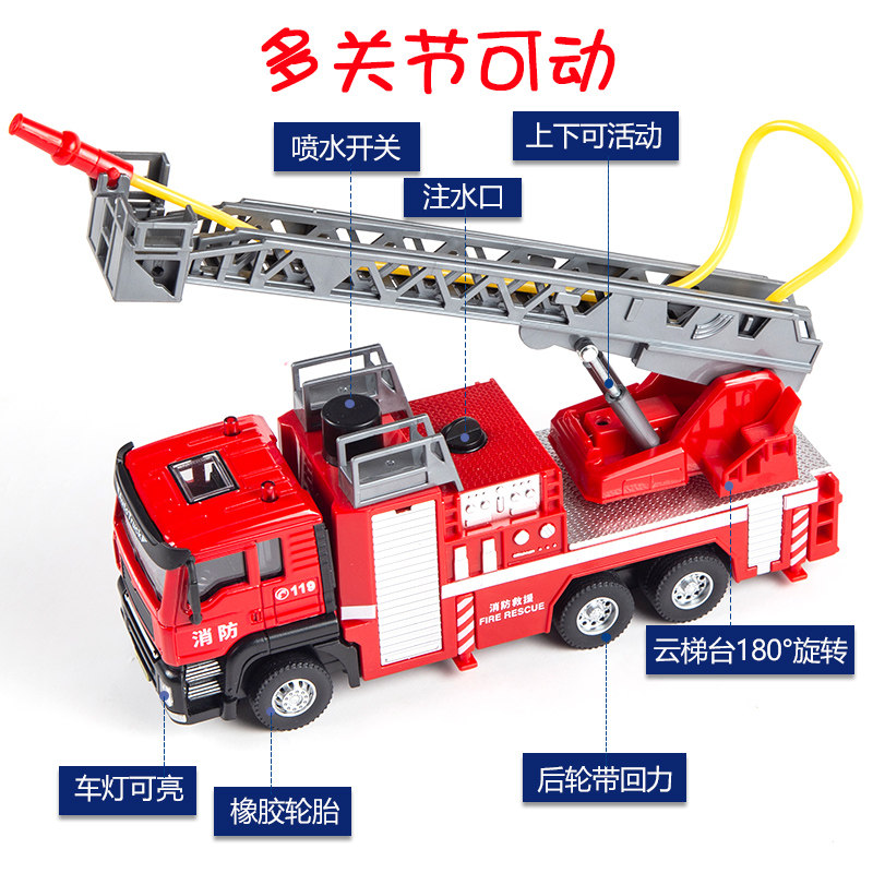 Children's fire fighting toy car boy large sprayable ladder rescue vehicle sprinkler simulation alloy car model