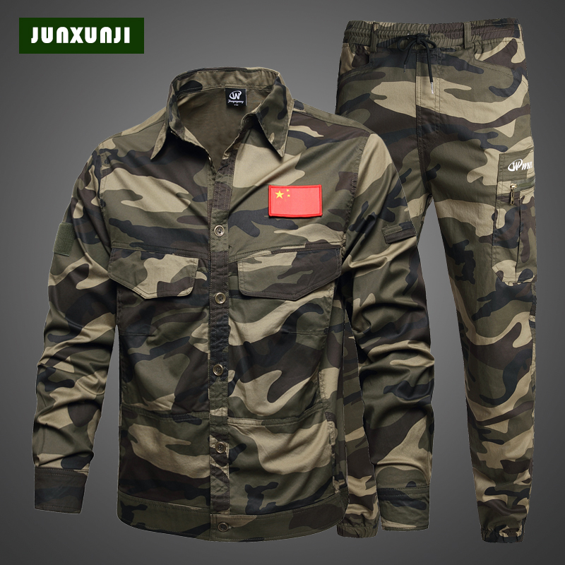 Outdoor authentic cotton stretch camouflage suit suit men's summer thin wear-resistant tear-resistant overalls Military camouflage clothing