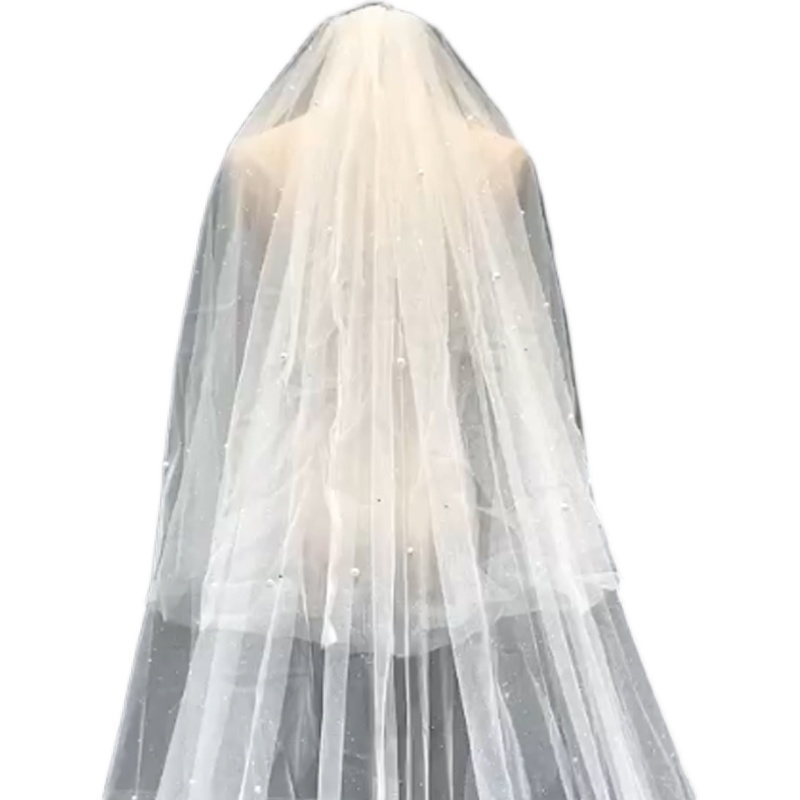 Veil bride main wedding dress photo props certificate long micro sparkling bead drill headdress double layer drag tail retro super immortal