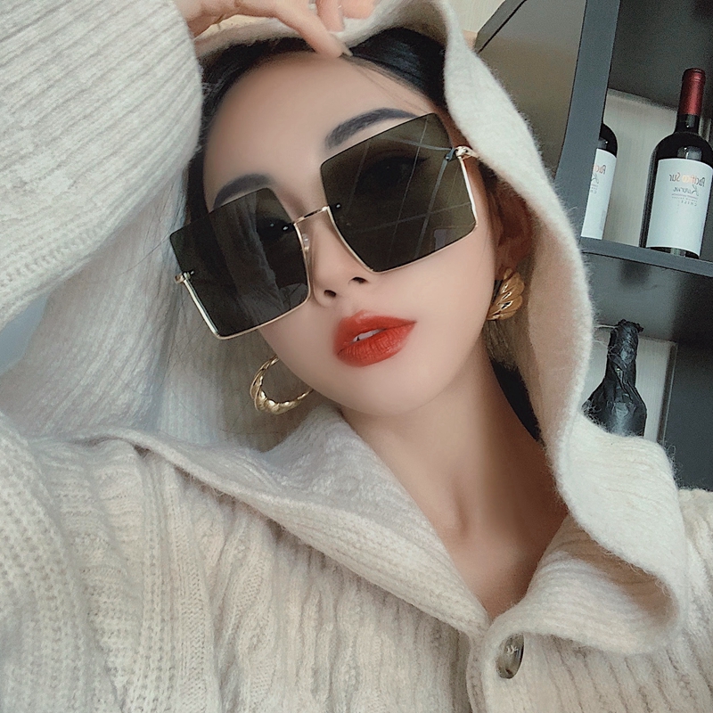 Net red large frame sunglasses Europe and America ins thin simple long face glasses ladies personality big face antique sunglasses