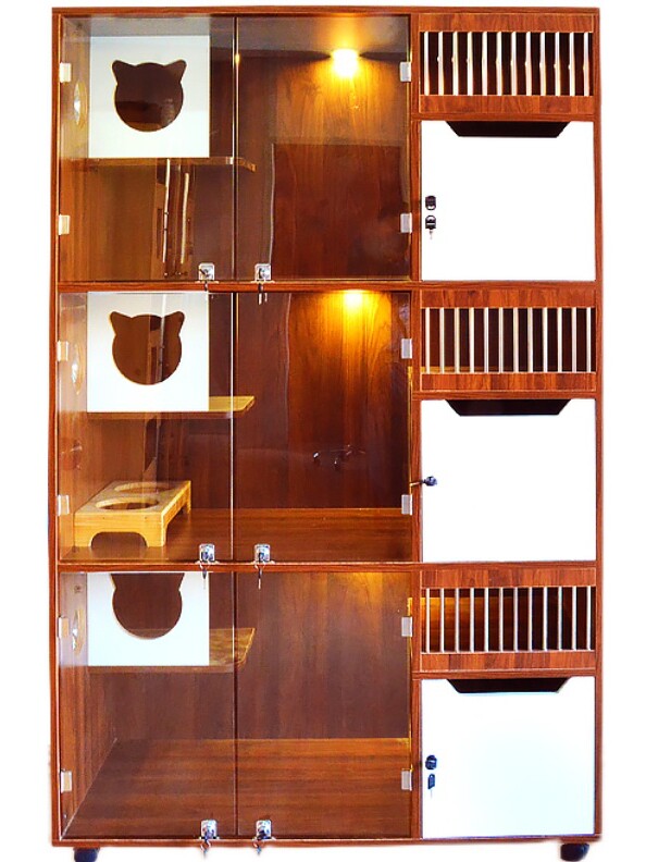 Black Forest custom solid wood cat cage cat villa pet glass display cabinet cat foster breeding cabinet three-story cat cabinet