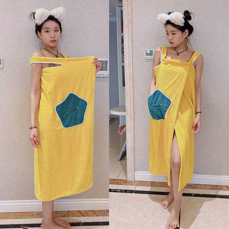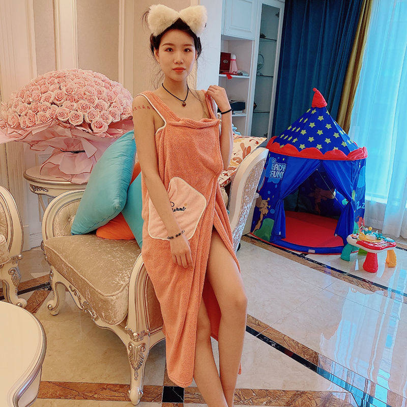 Bathroom can wear a female summer beauty salon home bathrobe than pure cotton to dry coral velvet wrapped in chest towel