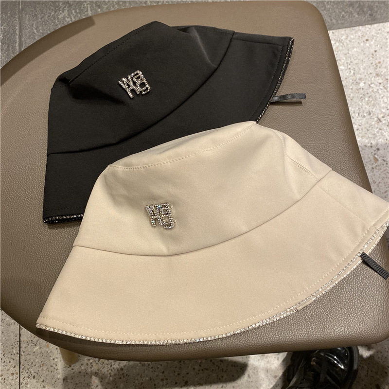 Korean rhinestone solid color bucket hat female summer and autumn sunshade sun protection basin hat all-match Japanese tide brand fisherman hat
