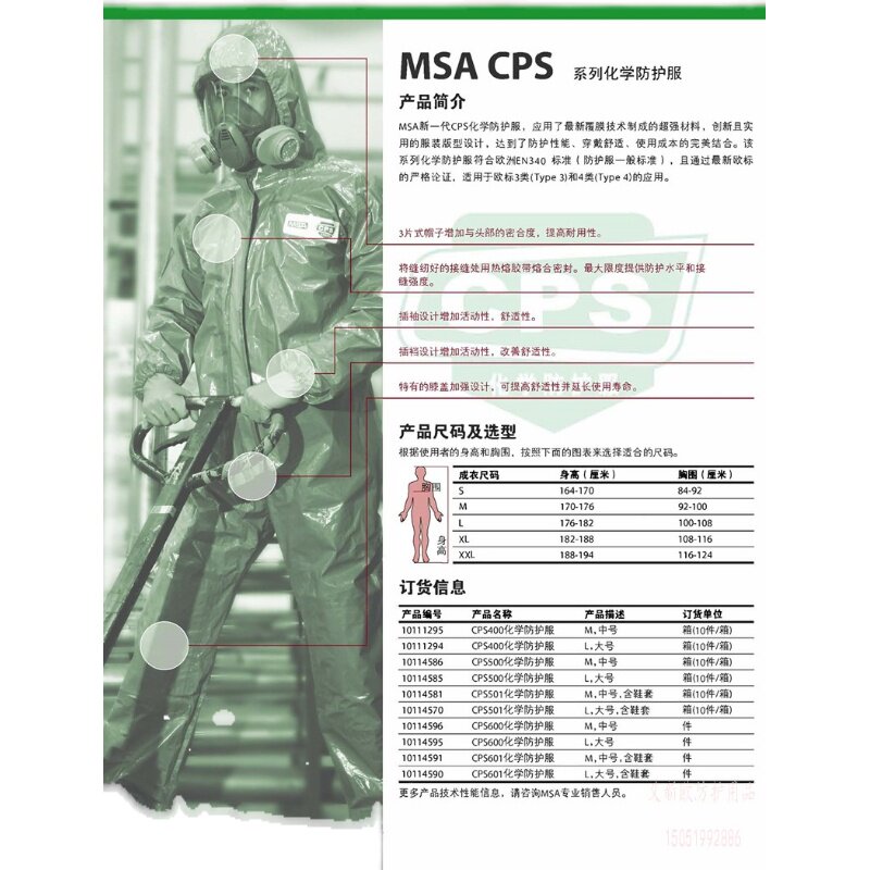Mei Si An 10114569 CPS501 body-type chemical protective clothing Dow chemical fabric soft anti-static