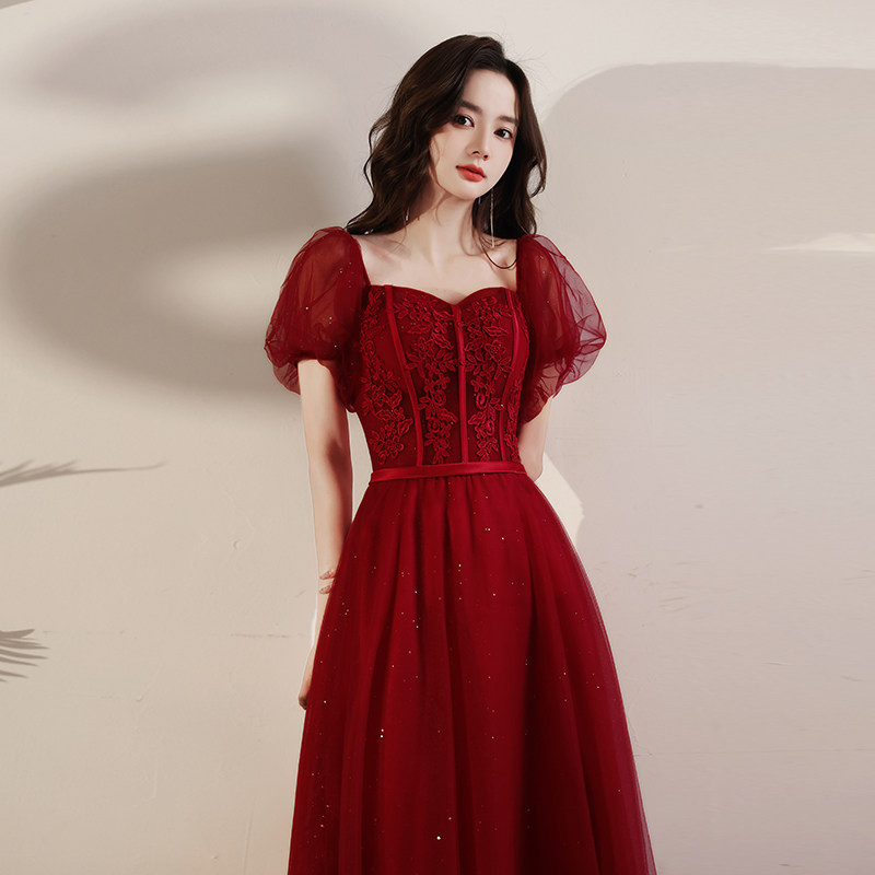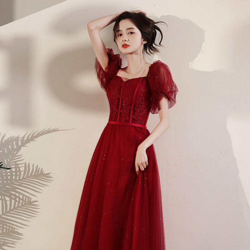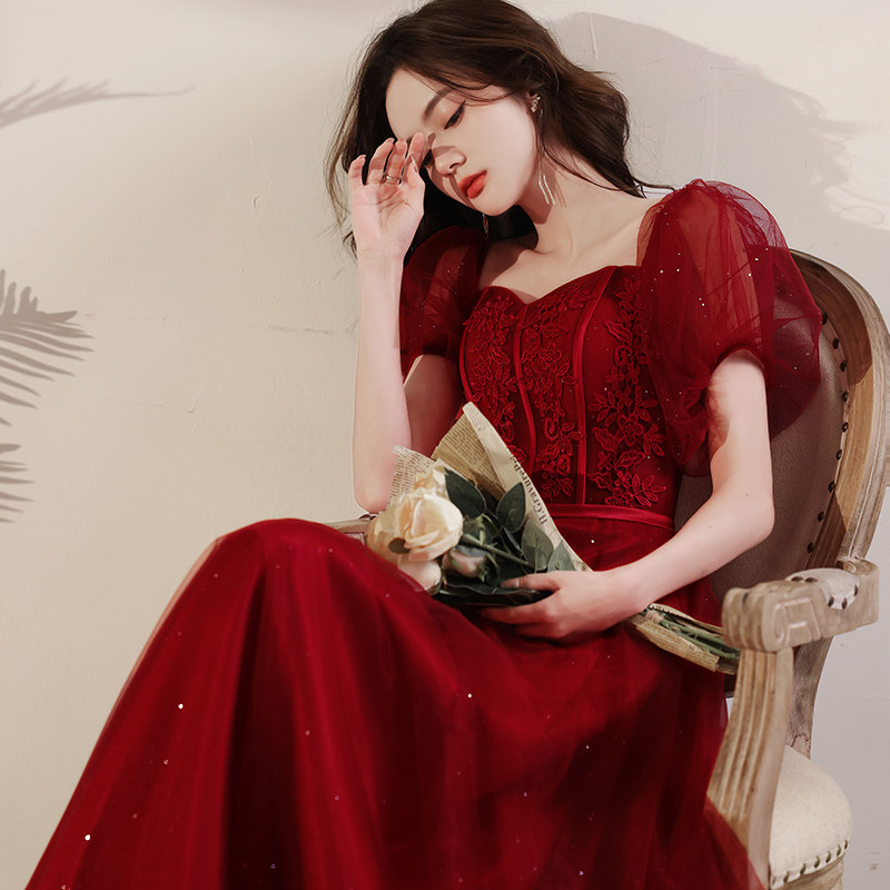 Bride toast dress summer 2021 new wedding wine red back door dress thin engagement dress small man