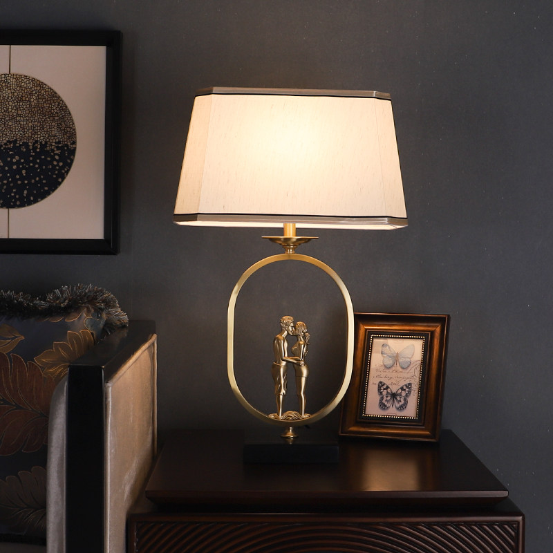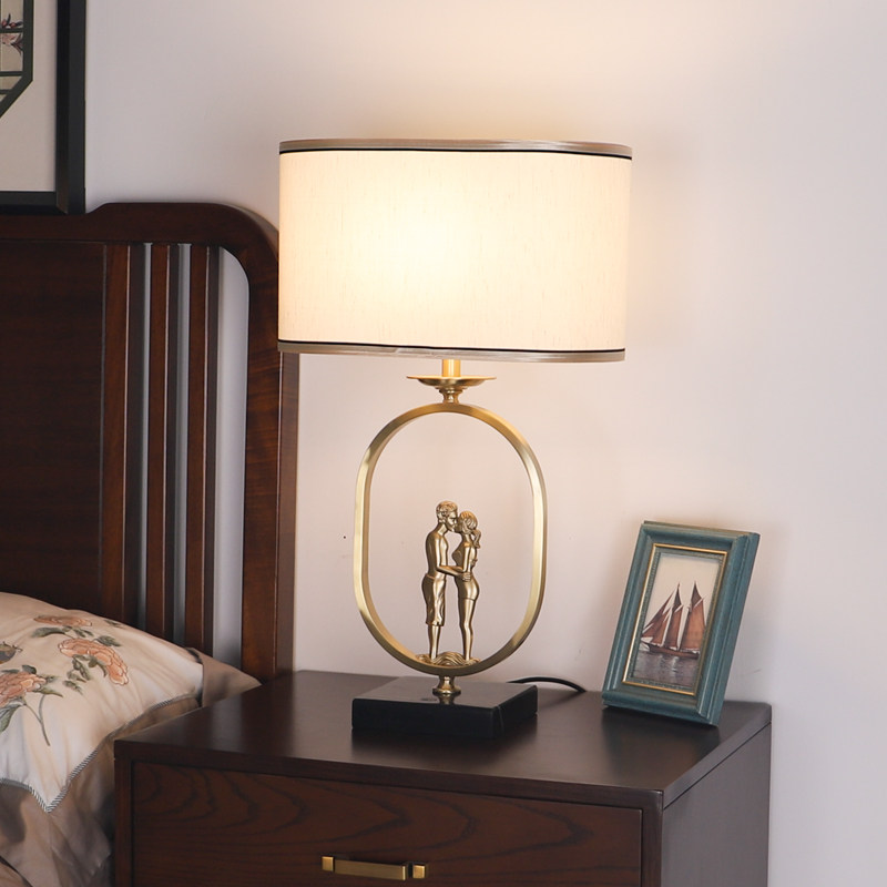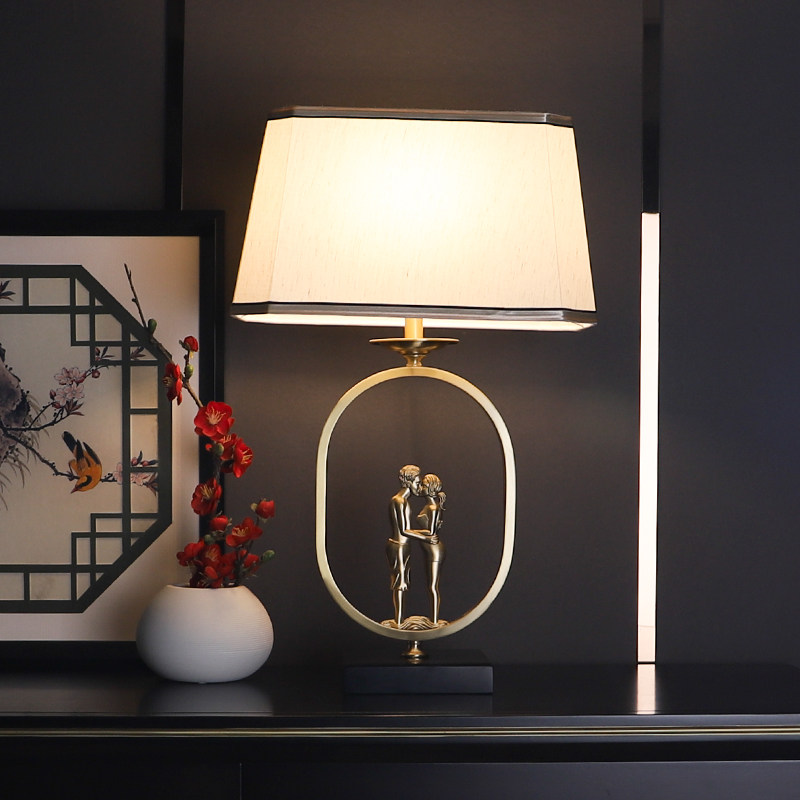 New Chinese-style all-copper table lamp living room retro study bedroom bedside lamp classical light luxury creative Zen wedding table lamp