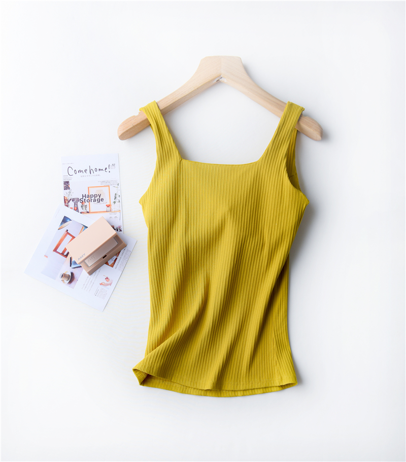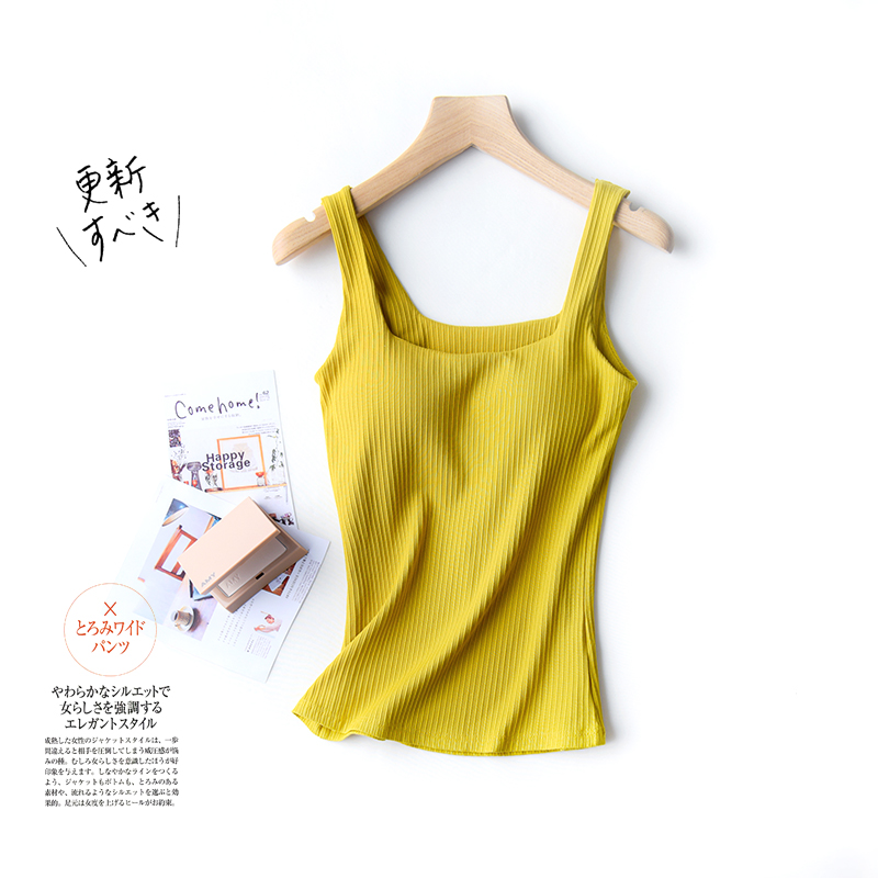 Pure cotton knit sleeveless square tie with chest cushion vest woman external wearing a short piece of obliterted chest beating bottom and inner lap harness spring and summer