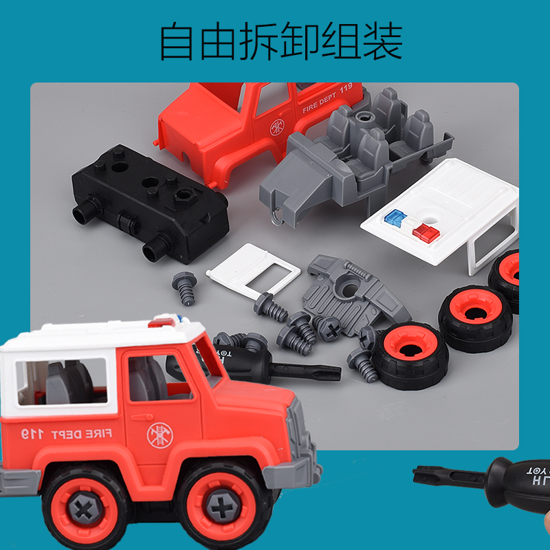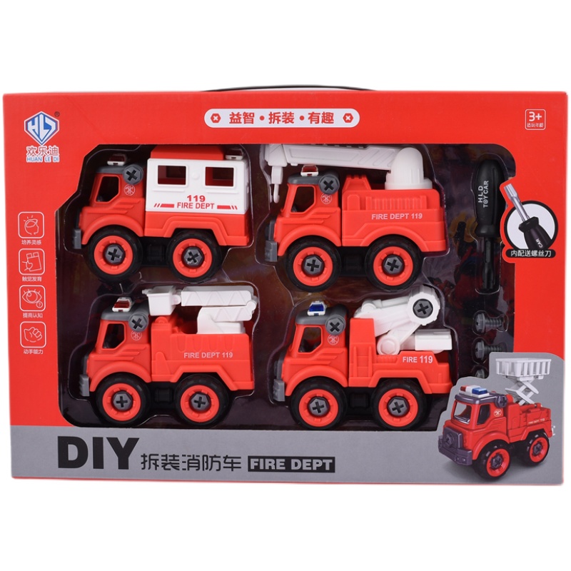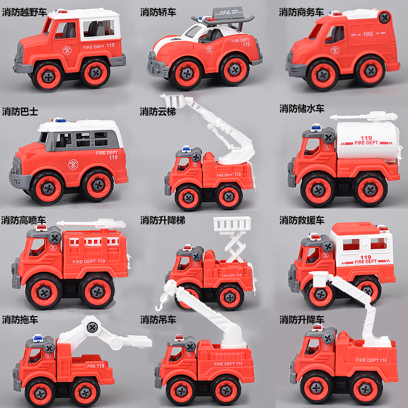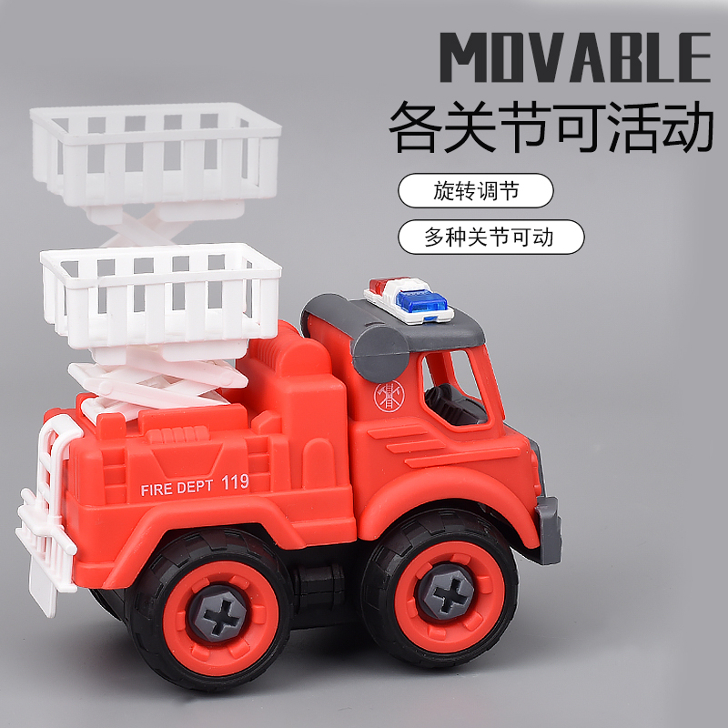 Boy sprinklers fire truck model 3 years 5 years old small cloud ladder emulation child assembly screwing screw assembly toy-Taobao