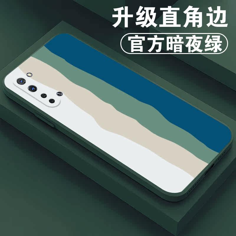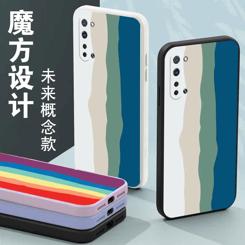 Rainbow Striped Mobile Phone Protection Shell OPPOreno3 Six Color Tide Card OPPOreno3pro Crash and Inwind Men and women reno3 Right side Cube Liquid Silicone Square Full Bag