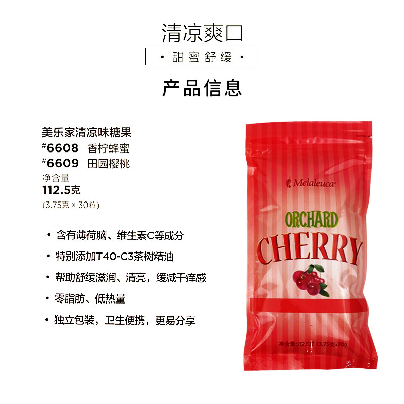 Melaleuca cool candy throat lozenge bergamot honey flavor pastoral cherry flavor hard candy sugary American snacks