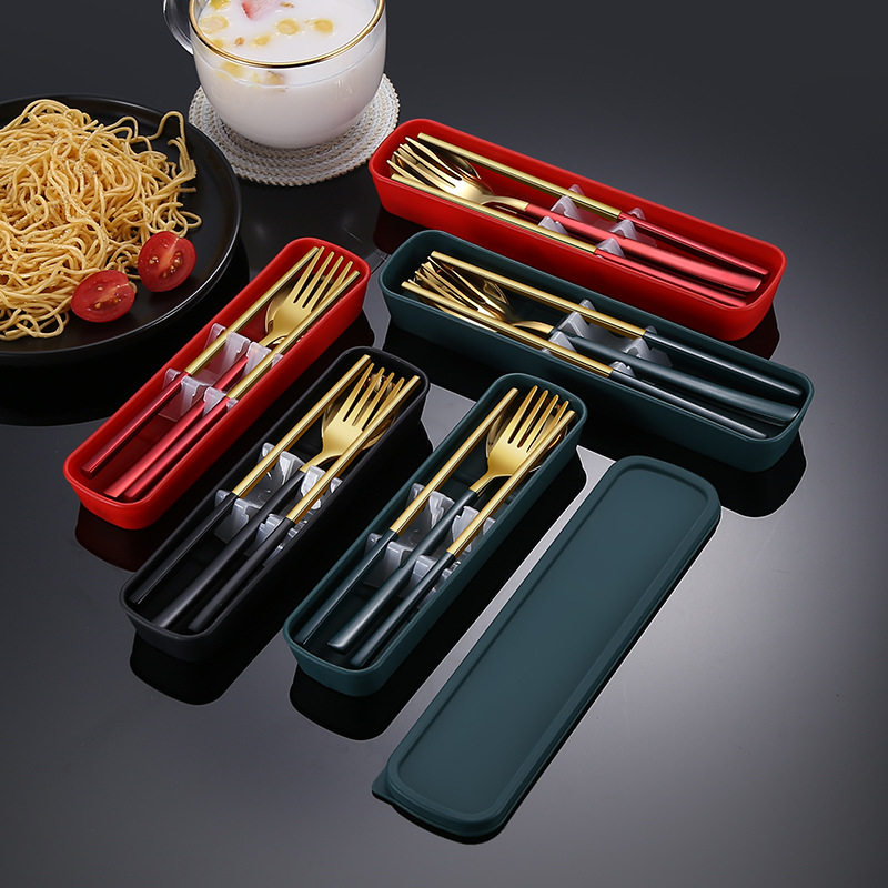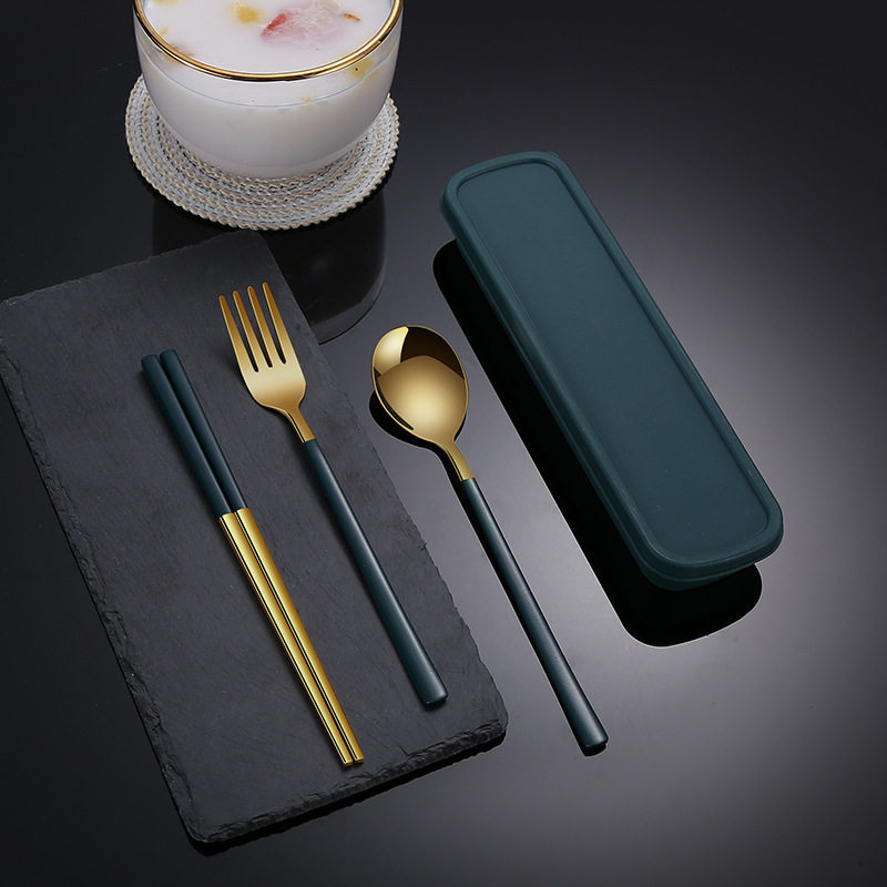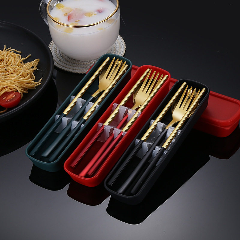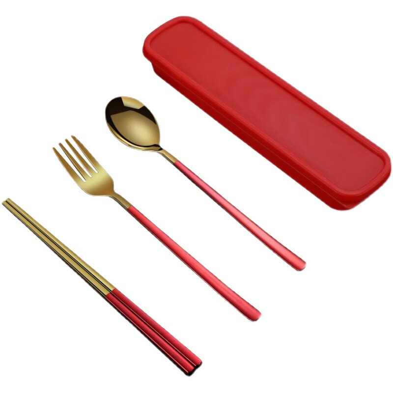 Spoon, fork and chopsticks three-piece set trumpet-green spoon, fork and chopsticks three-piece set trumpet-red spoon, fork and chopsticks three-piece set trumpet-black