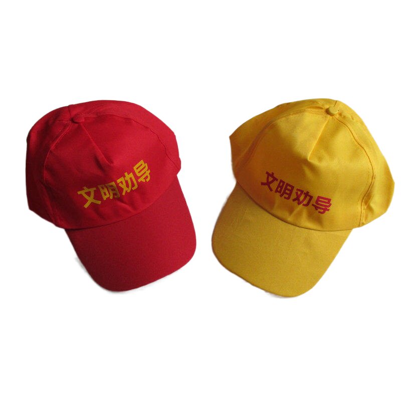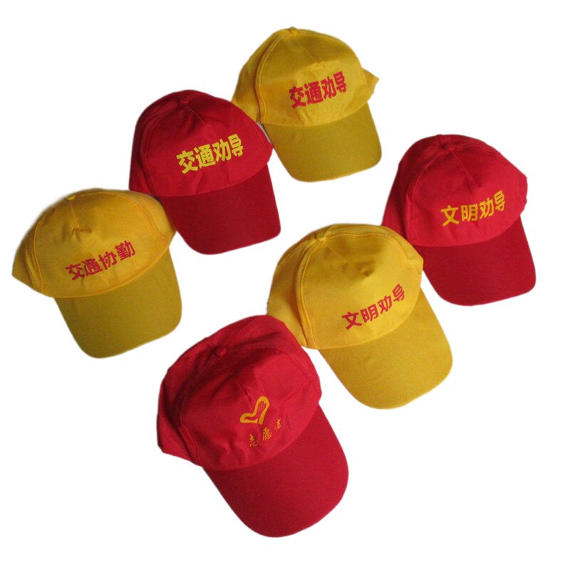 Red (no word) cap red (civilized advice) cap yellow (no word) cap yellow (civilized advice) cap red (traffic advice guide) cap yellow (traffic advice guide) cap red (volunteer) cap yellow