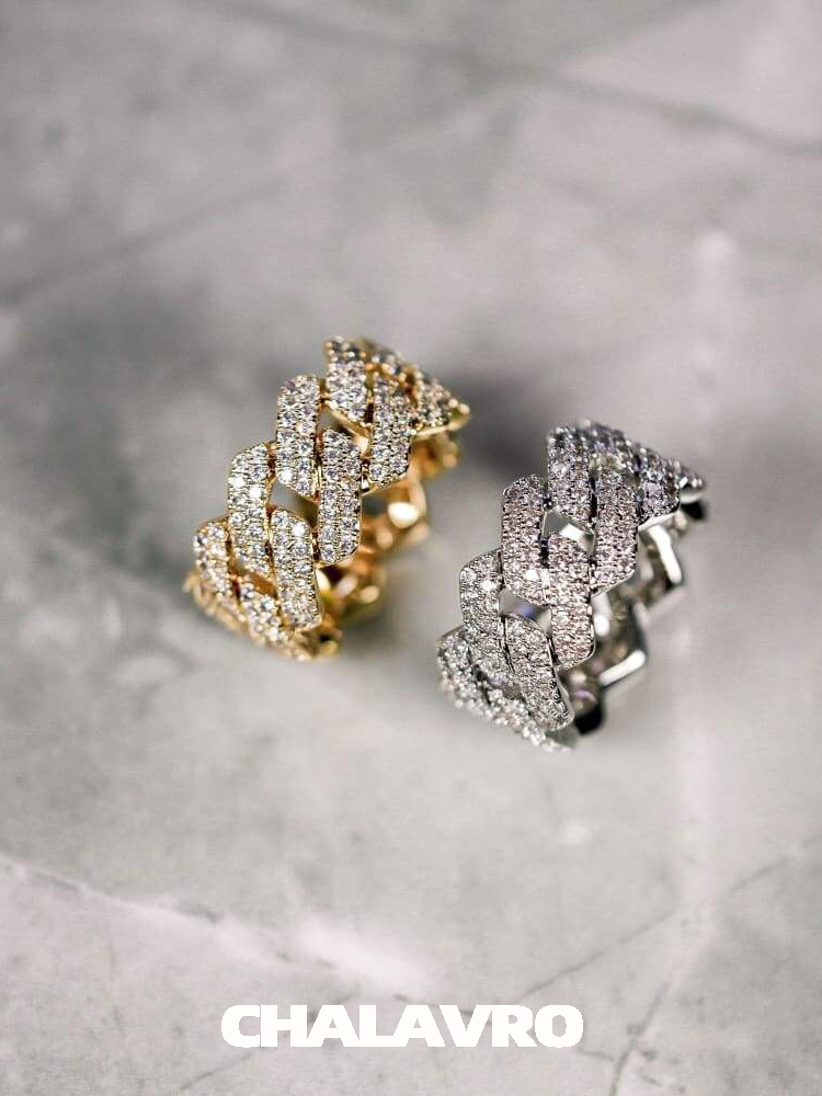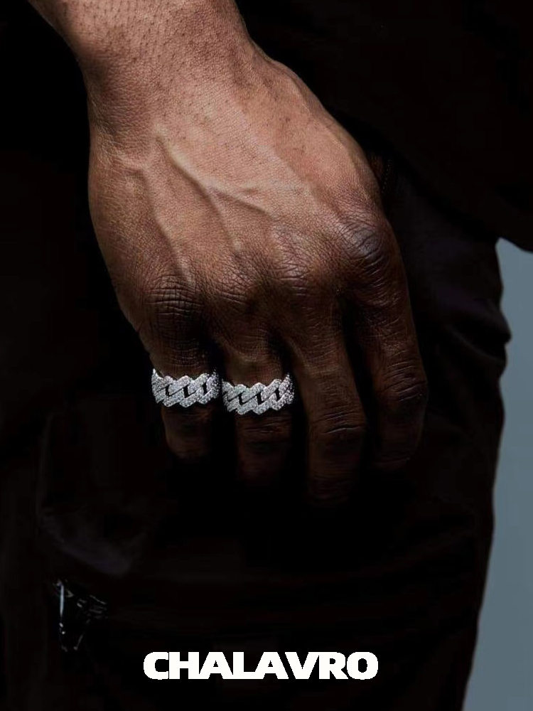 CHALAVRODW Cuban Ring Cuban Ring full diamond gold and silver color men and women bundy hip hop