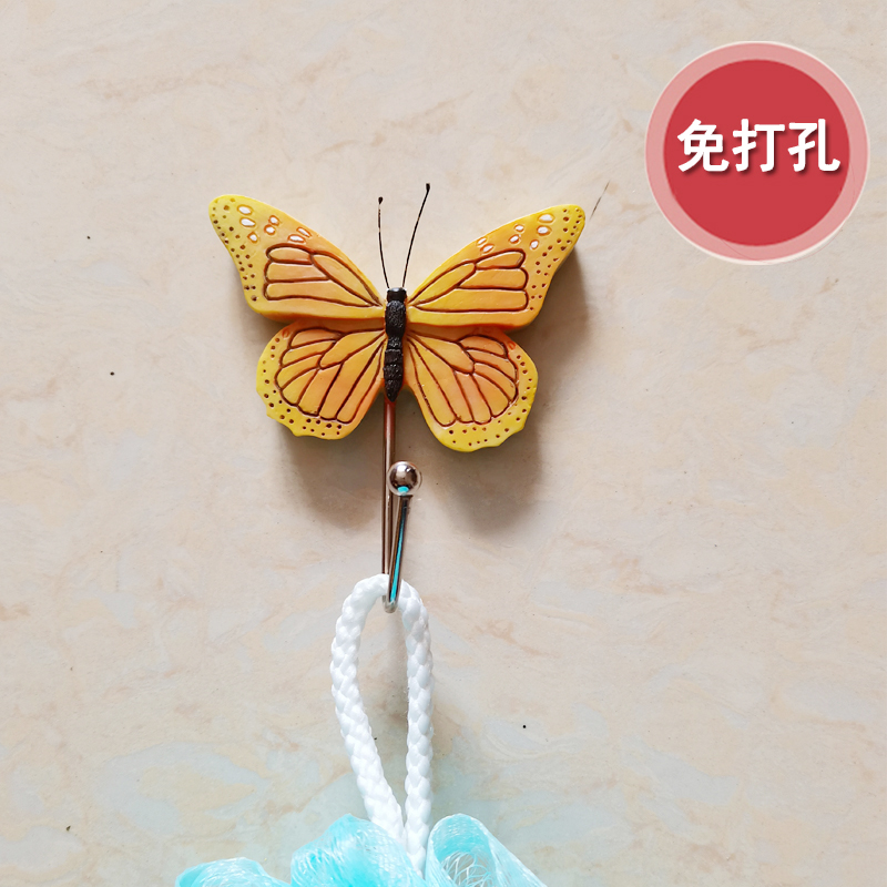 Creative resin butterfly strong non-marking sticky hook on the kitchen wall behind the bathroom door coat and hat-free nail-free punch-free hook