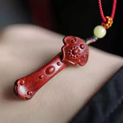 Indian leaflet red sandalwood Ruyi pendant Carved mahogany couple male and female necklace pendant Pendant Birthday gift