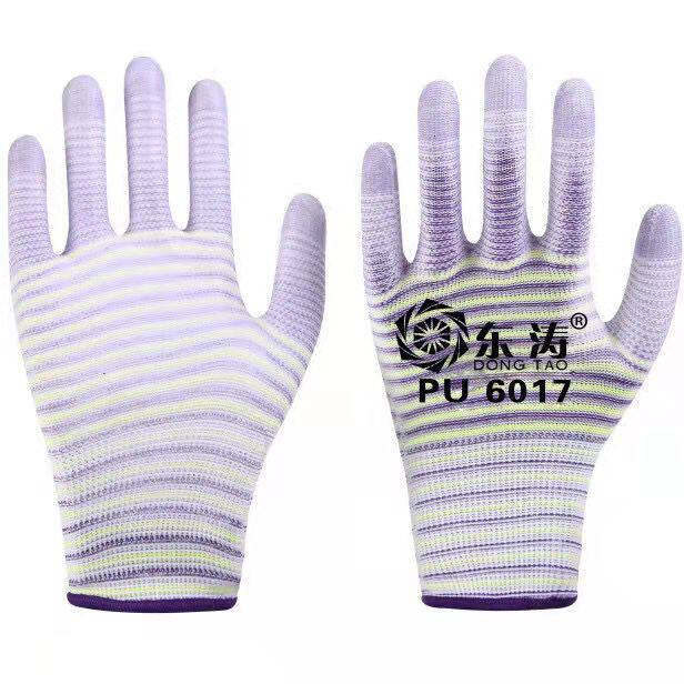 Dongtao PU gloves antistatic palm coating light and flexible and breathable adhesive hand type non-slip thirteen pin white nylon