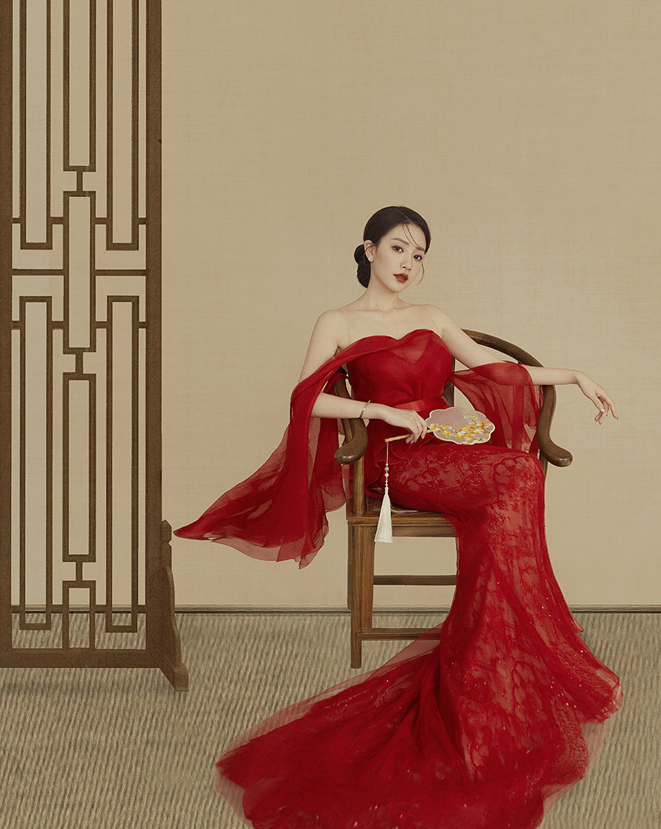 New wedding photography photography theme location travel clothing Couple photo photo clothing red fishtail dress dress