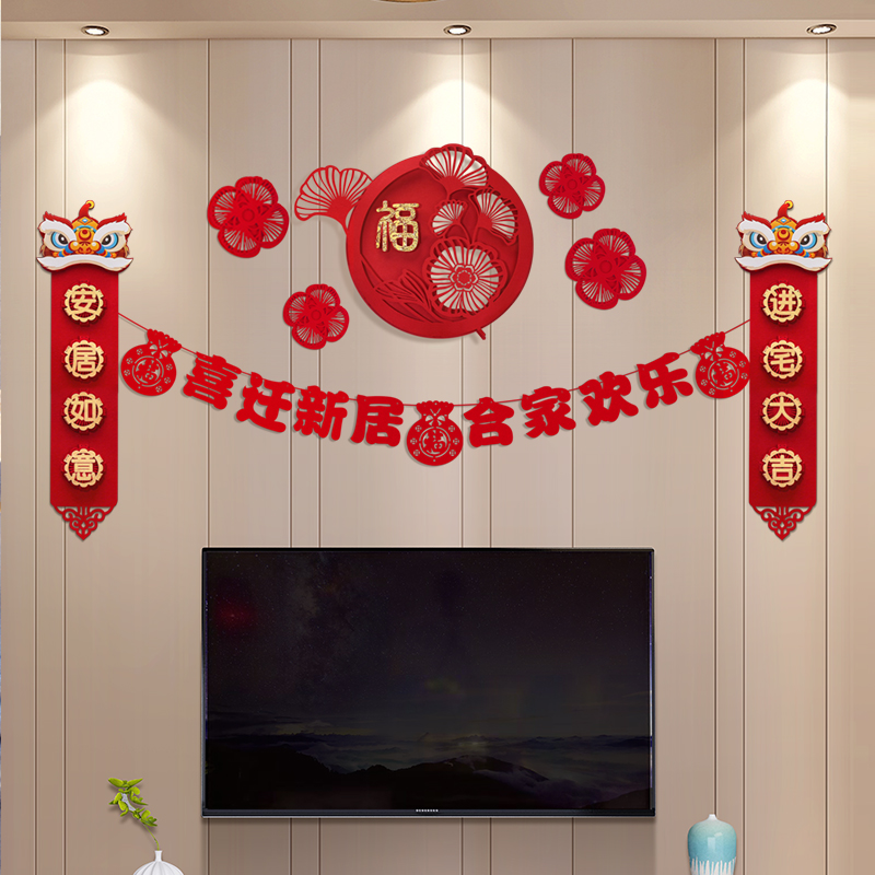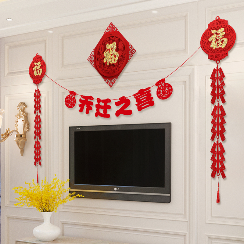 New home couplet housewarming decoration living room wall stickers Fu character hanging ornaments into the house layout dress up set moving supplies Daquan