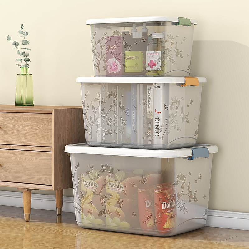 Transparent storage box plastic basket finishing box extra-large thickened toy clothes with lid storage box household storage box