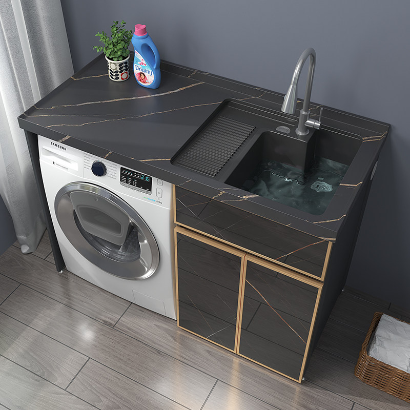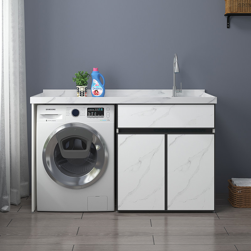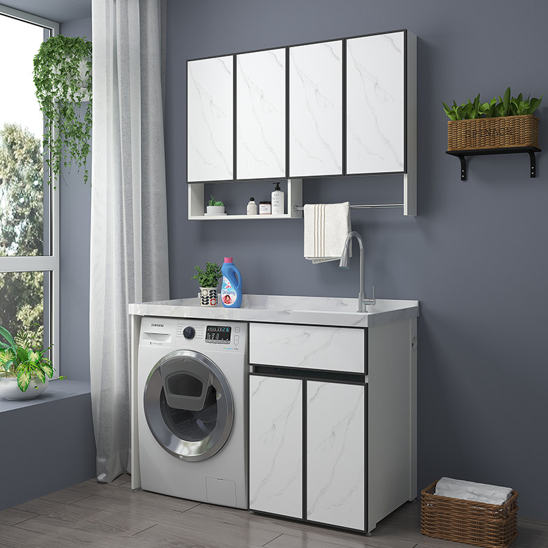 Space Aluminum Laundry Cabinet Rock Board Balcony Washing Machine Cabinet Combination Pool Trough Integrated Partner Cabinet Washstand Basin with washboard