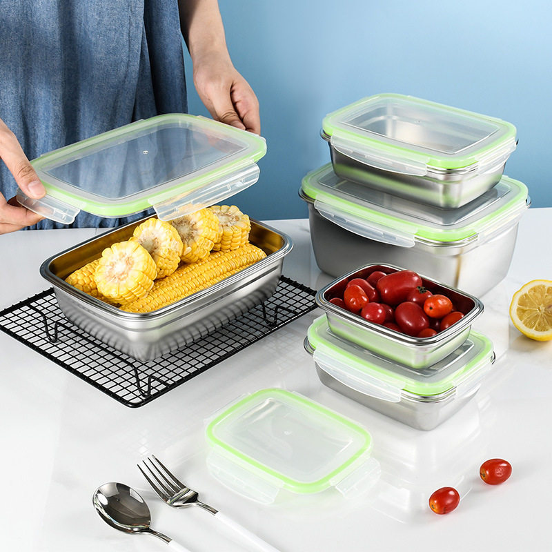 Food grade fresh box Refrigerator sealed freezer with cover when separated lunch box stainless steel preservation box