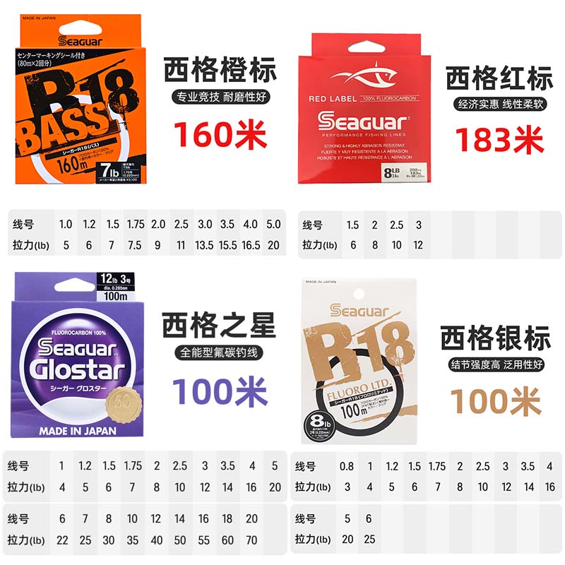 Silver Label -100 m TATSU Dragon -183 m (New Old Stochastic Fat) Orange Label -160 m Sig's Star 100 m (50 Anniversary Souvenir) Red Label -183 m White Label -1