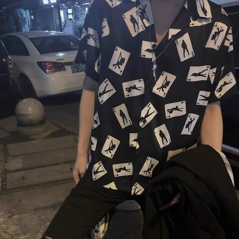 Tide brand AMIRI short-sleeved shirt slp poker print European and American style loose high street GD Quan Zhilong same style
