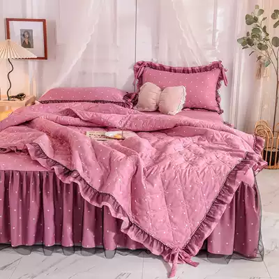 Xiaohongshu recommends cotton cool quilt skirt four-piece cotton thin quilt air conditioning summer quilt double bed cover summer