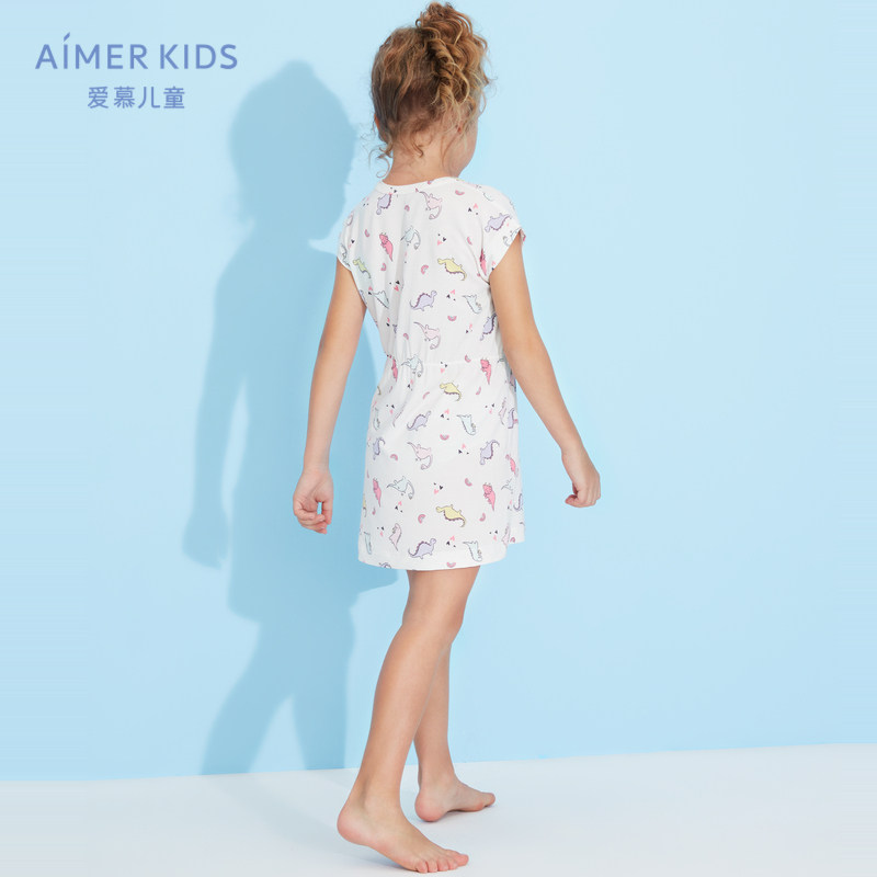 21 New products Ai Admire Children Girl 3-year-old can love cute interesting print Modal short-sleeved nightgown home clothes can be worn outside
