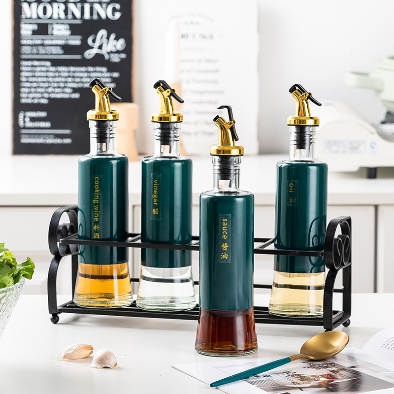 Cherry Blossom Qi Seasoned Bottle Glass Kitchen Seasoning oil salt sauce Vinegar Complete Household Seasonings Bottle Jar Combined Suit