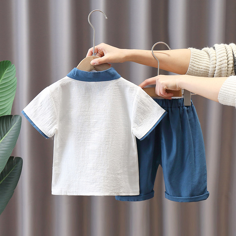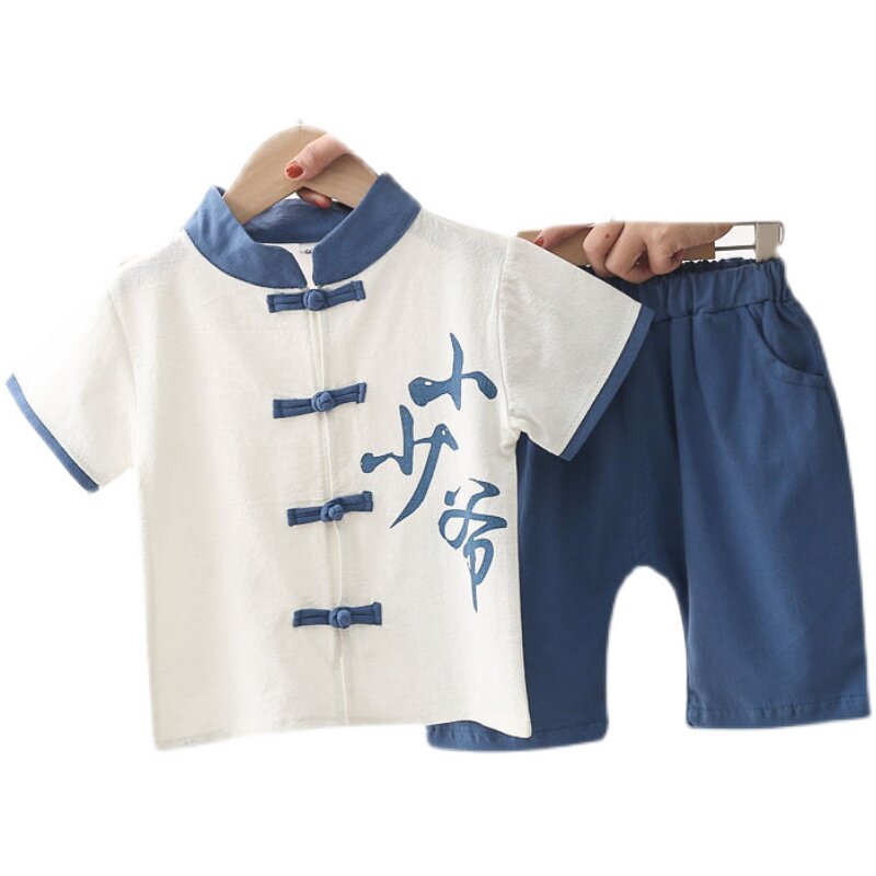 Boy Summer Clothing Cotton Linen Suit Summer 2022 New China Wind Hanfu Short Sleeve Ancient Dress two sets of donuts