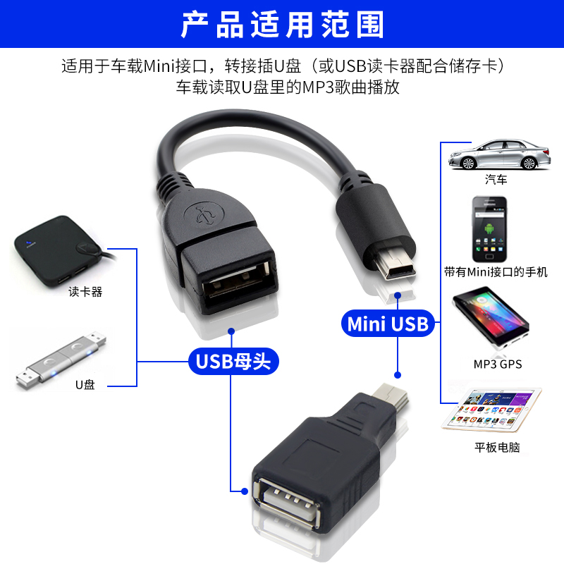 Car audio U disk adapter car mini usb adapter cable car MP3 data cable conversion head converter