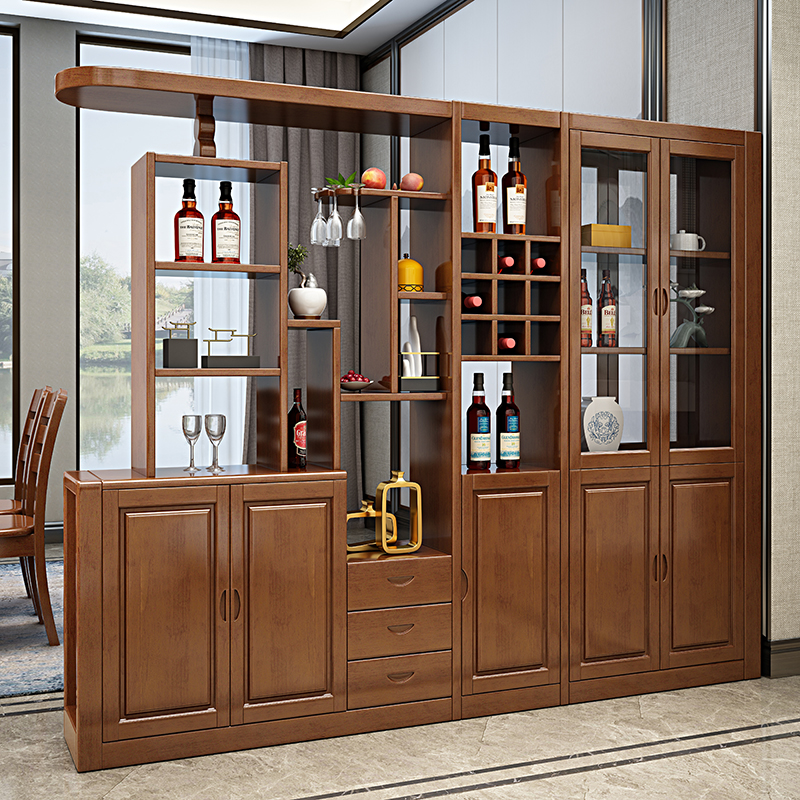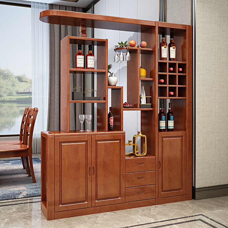 Solid wood partition cabinet living room porch cabinet Chinese style hall cabinet wine cabinet integrated double-sided screen decoration storage cabinet