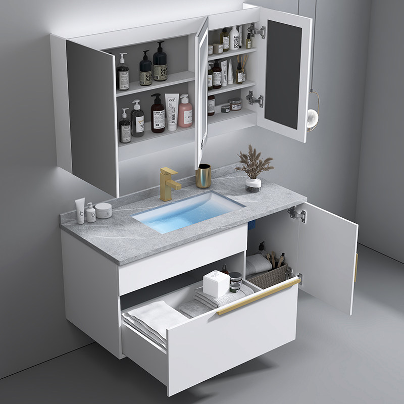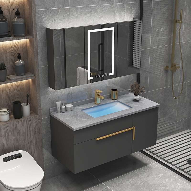 Modern minimalist light and luxurious rock board integrated bath cabinet combination intelligent hand wash wash face pool make-up room washout terrace basin