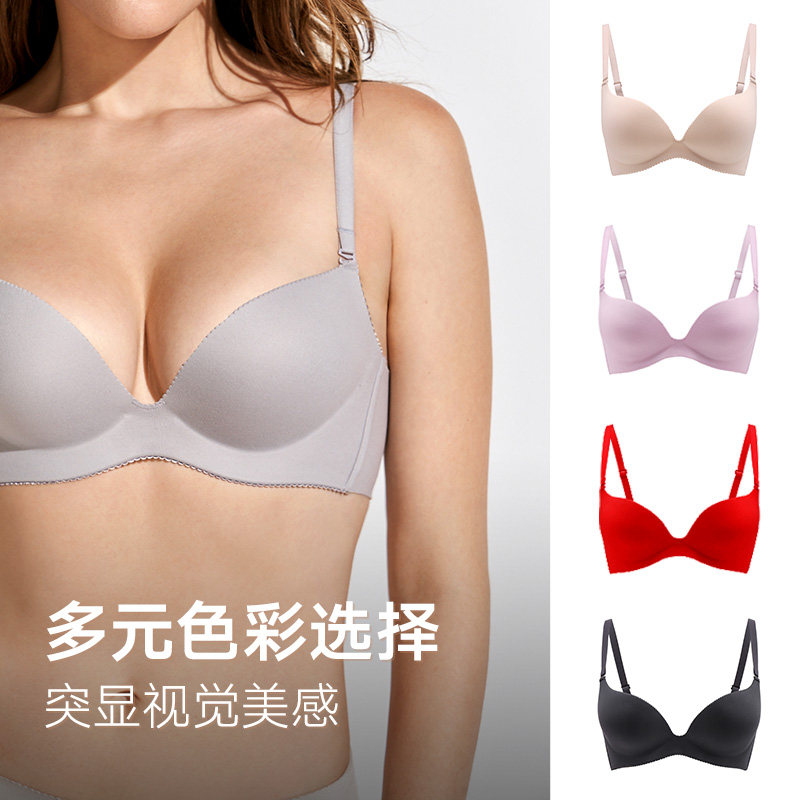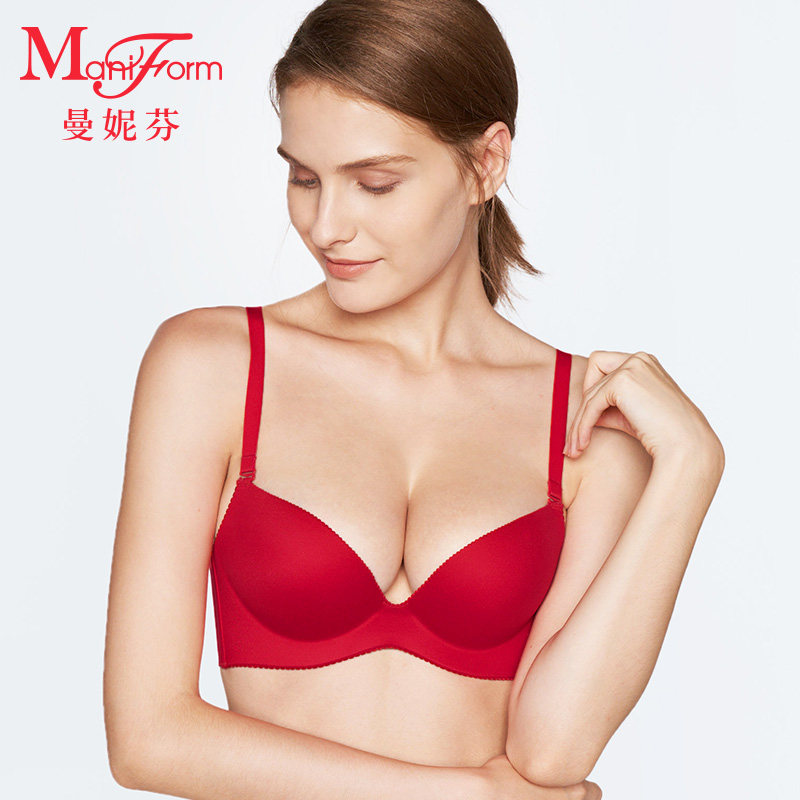 Manifhan soft steel rings comfortably gathered red bra simple glossy faceless small bra lingerie women's versatile bra