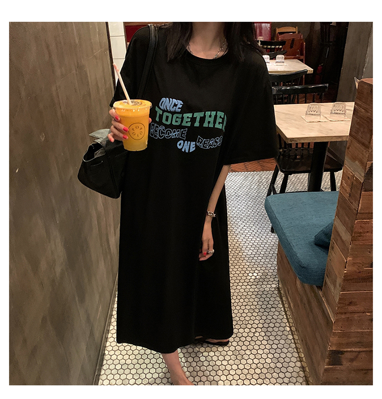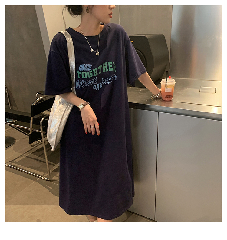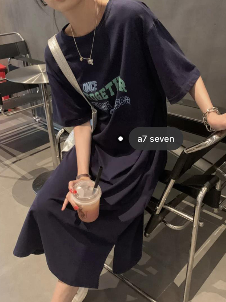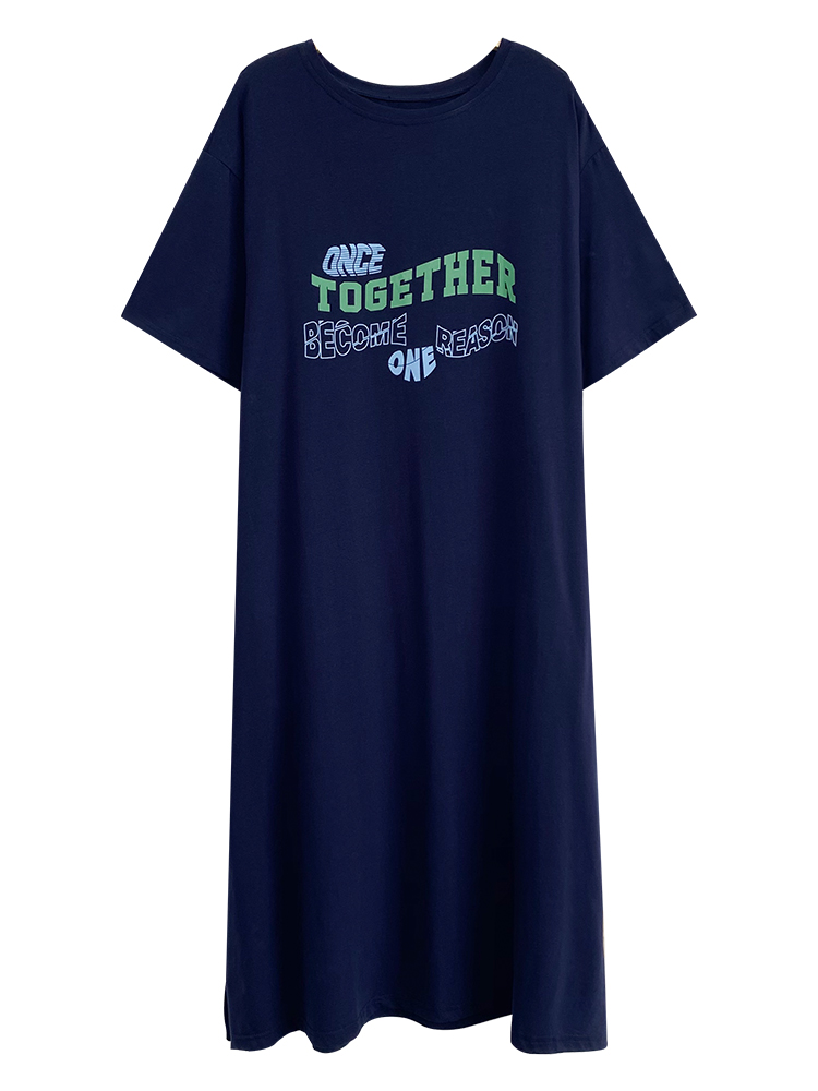 Lengthened Sleeping Skirt Woman Summer Pure Cotton Short Sleeve Overknee Dress Korean Version Large Size Yard easy to wear outside wearing home clothes