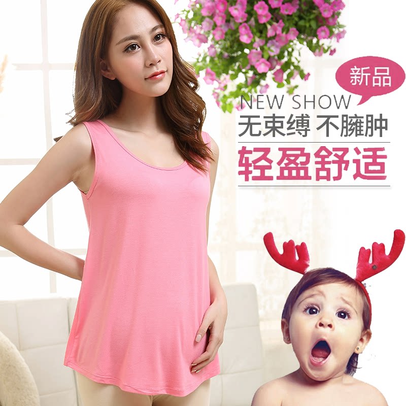 Pregnant Woman Harnesses Vest Round podium Modale Pregnancy Pure Color Inner Hitch Undershirt Comfort Loose Large Code Gestation Woman Dress-Taobao