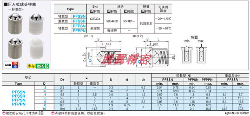 Replacement mithrice pressed in type ball head plunger PFSN PFPPN3 4 5 6 8 10