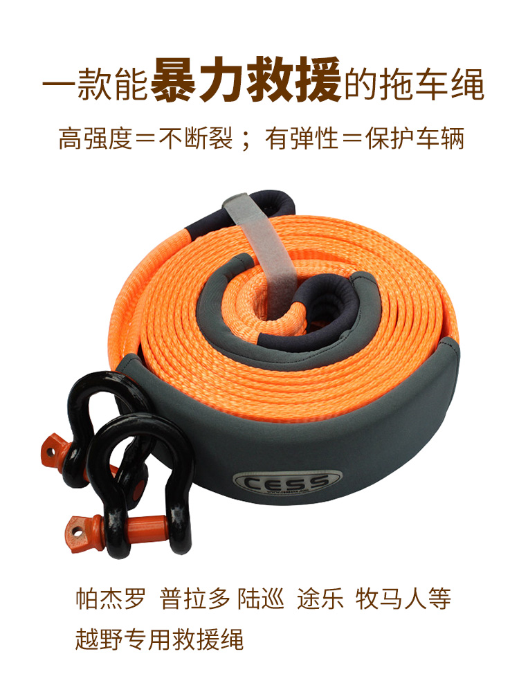 CESS 15 tons strong anti - rush - off track rope cross - country thickening and pulling rope against rush - resistant rescue traction rope