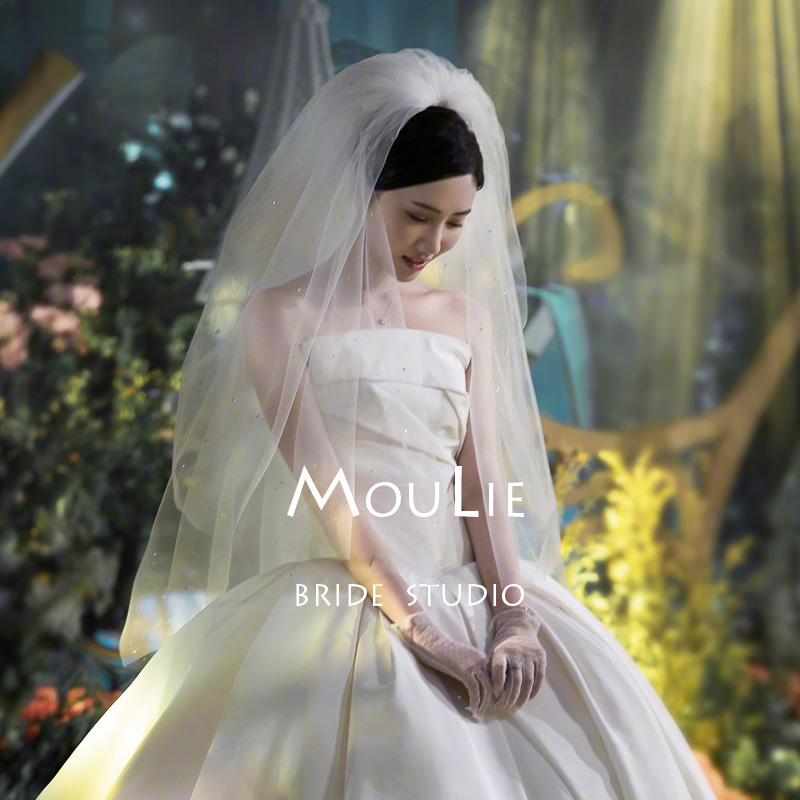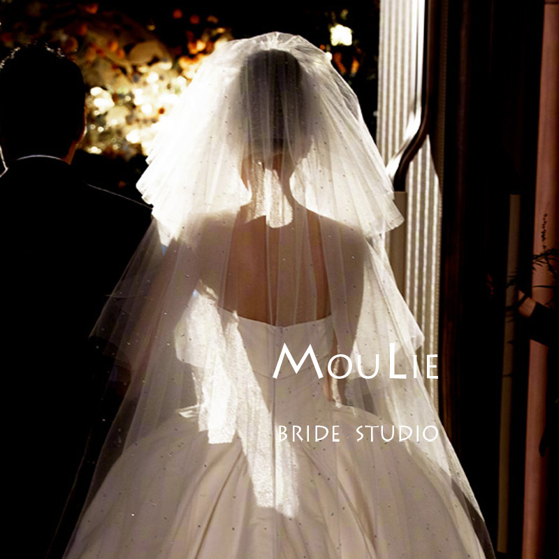Veil bride's main wedding dress high-end luxury heavy industry long tailed big stomach Alice with the same veil pure handmade custom - Taobao