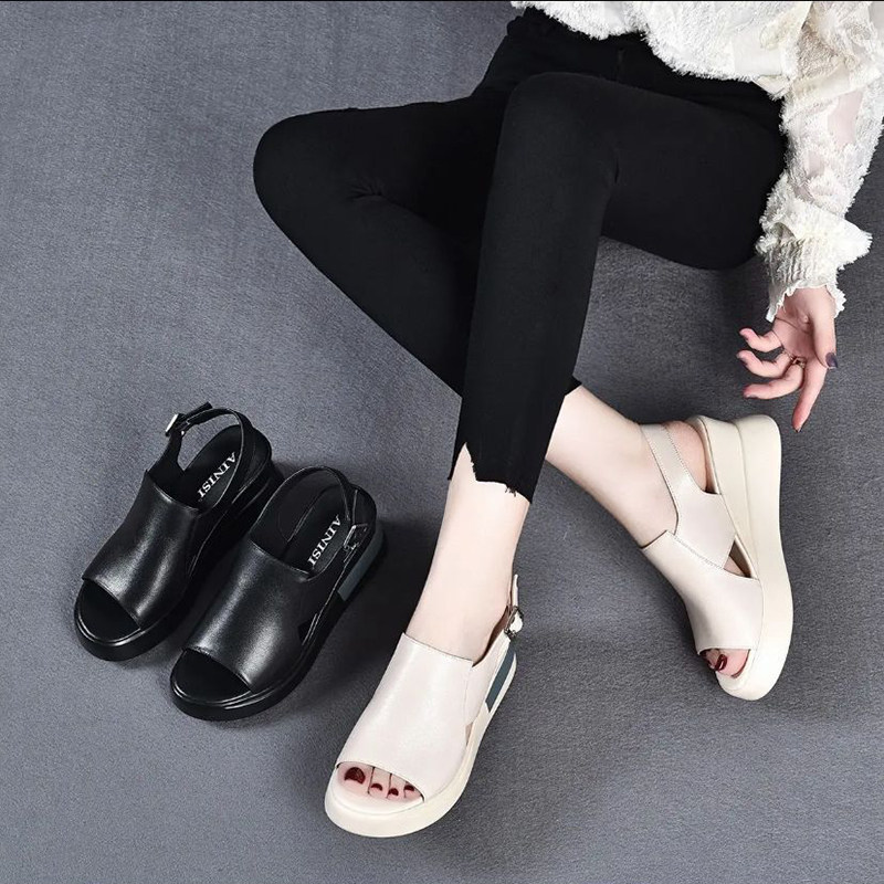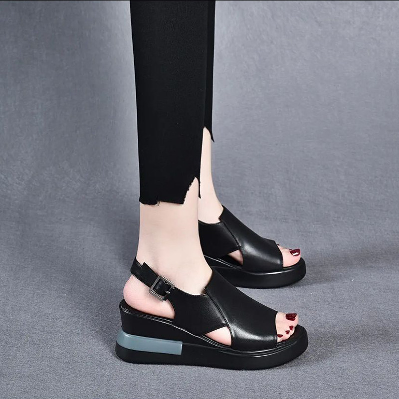 Genuine leather Rome sandals women 2022 new summer ladies Muffin Bottoms Wedge Sandals Sandals Fish Mouth Casual Women Shoes