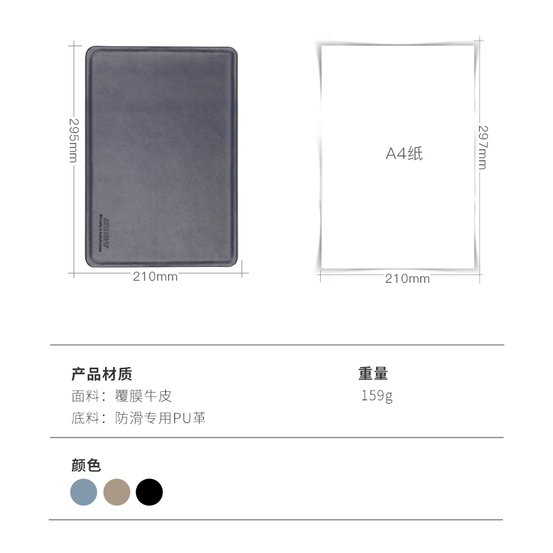 ACECOAT Bull Leather Slip Rat Cushion No Taint Business Minima Pure Color Slip Rat Cushion Small Table Mat Adapted Notebook or Desk