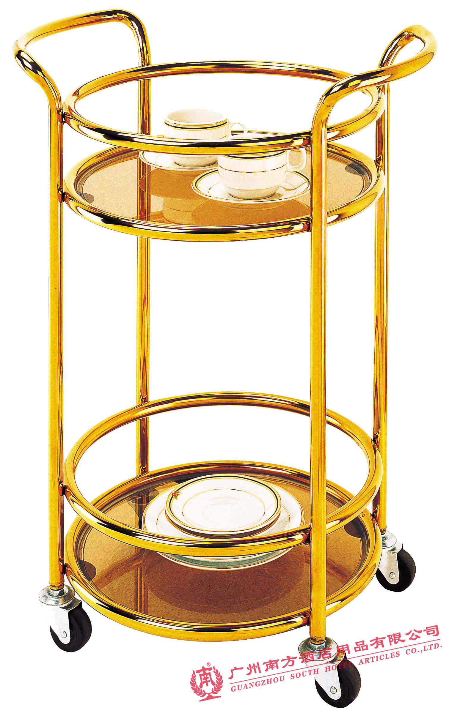 Southern C- 88 Stainless Steel Round Wine Truck Two-storey Delivery Car Hand Push Service Car Pastry Car Hotel Delivery Car