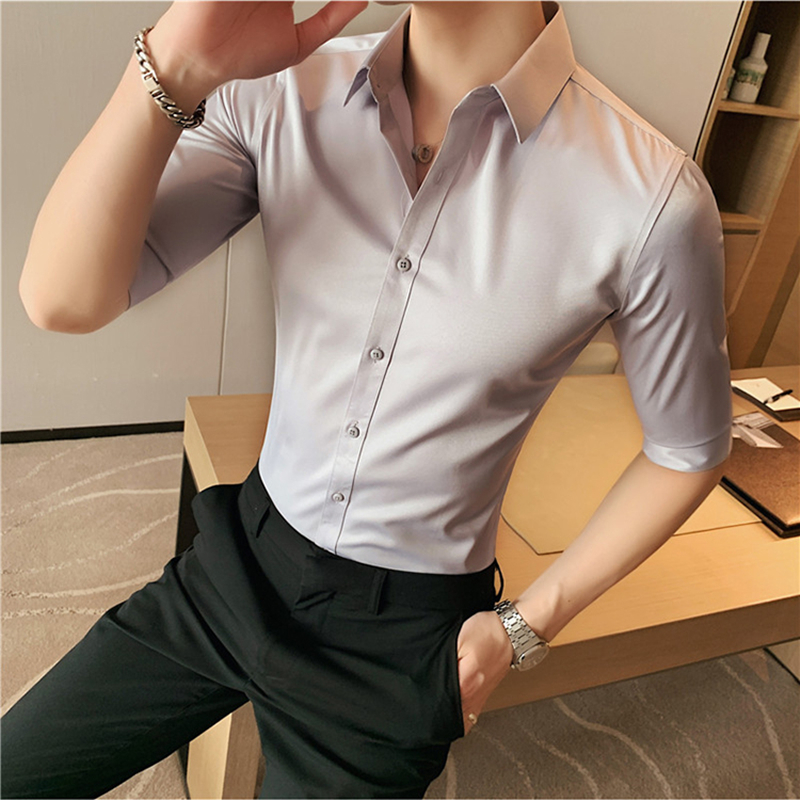 Summer thin five-sleeve shirt male pure sleeve middle sleeve shirt edition repair free ironing business leisure short sleeve shirt