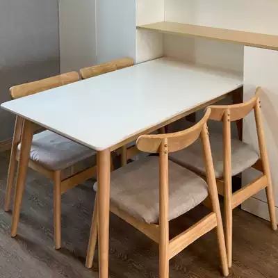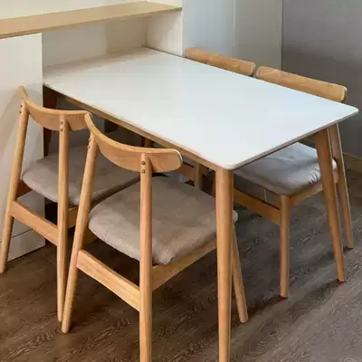 Solid Wood Rock board dining table modern simple household small apartment pure white rectangular oak luxury stone Japanese Nordic table