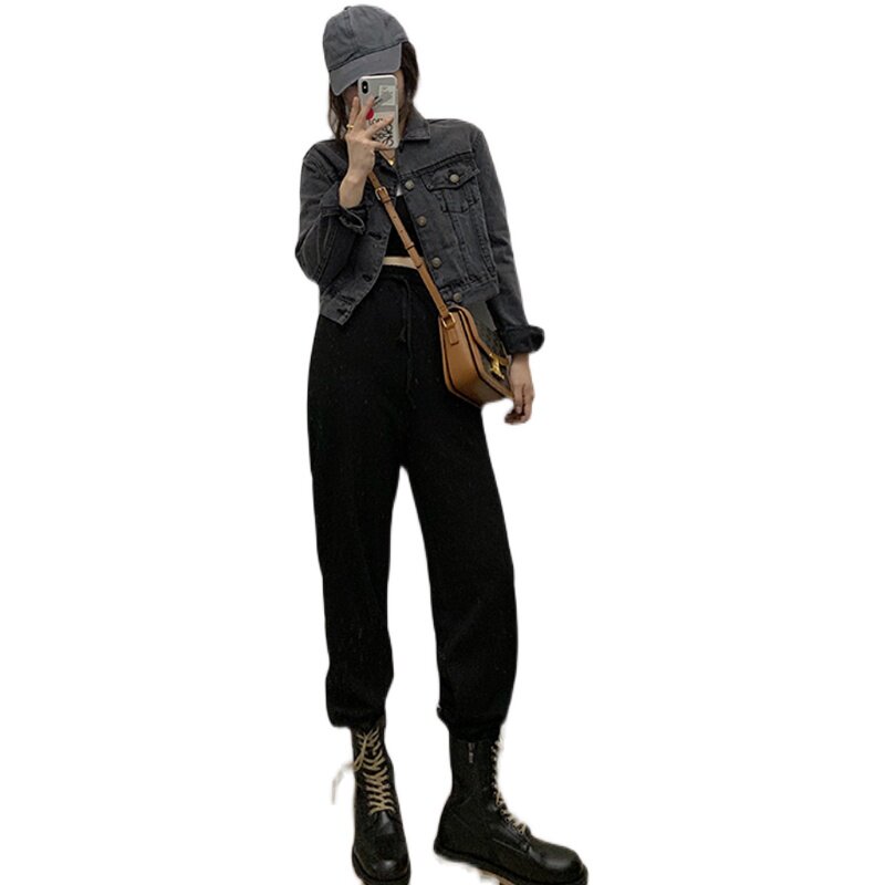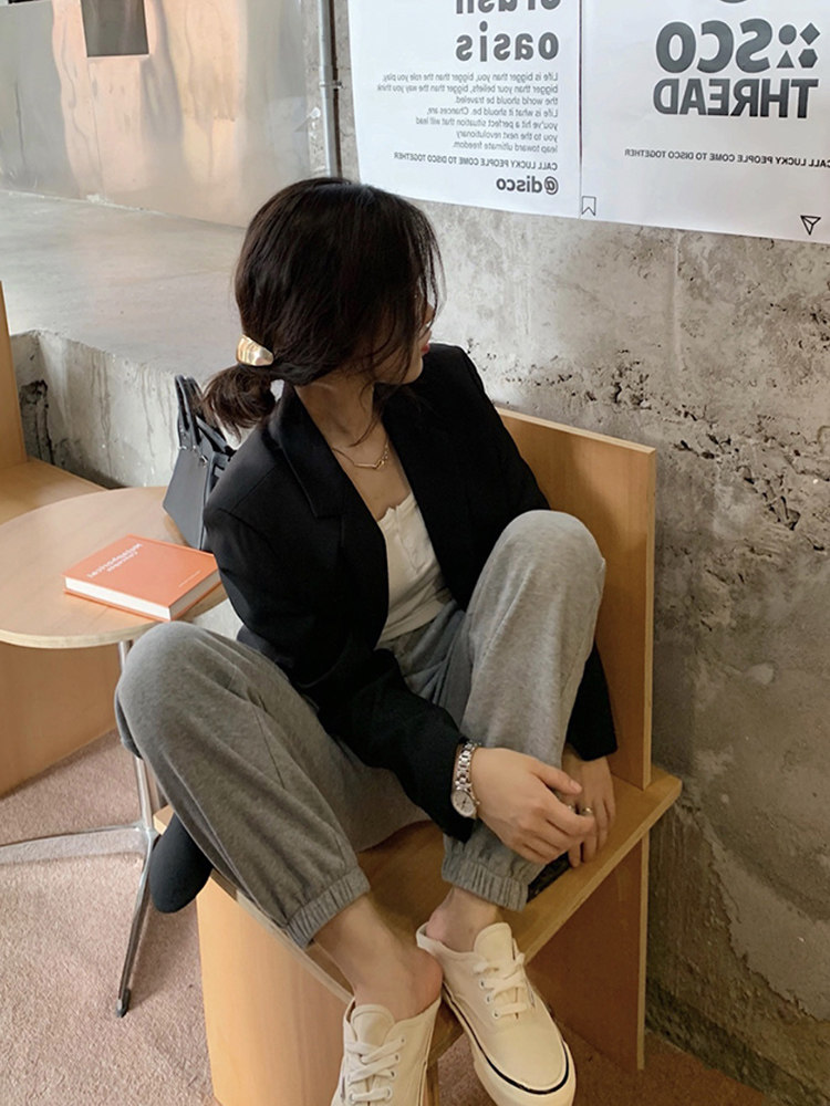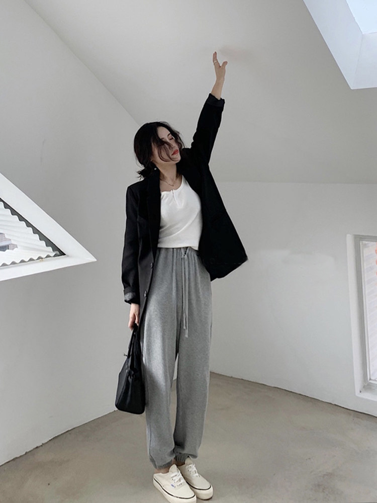 VEEE thin high waist thin loose hanging gray sports casual pants women's small drawstring straight drawstring pants
