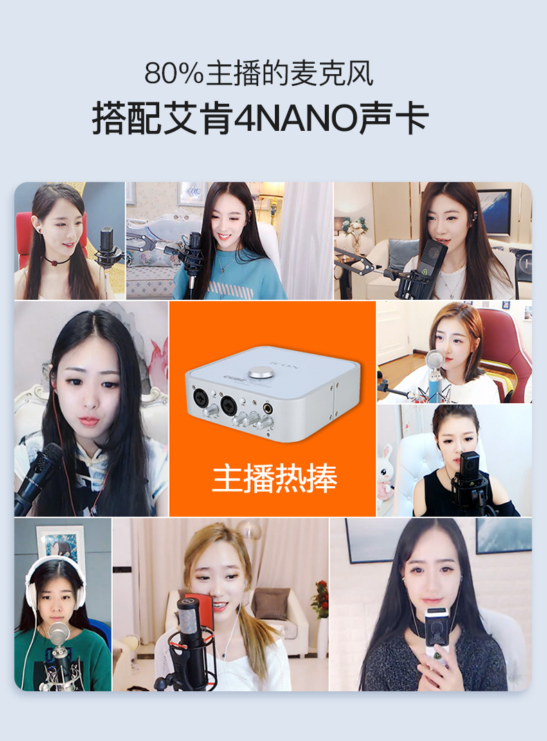 Aiken external sound card set ICON 4NANO mobile phone computer desktop live shouting wheat universal singing special equipment