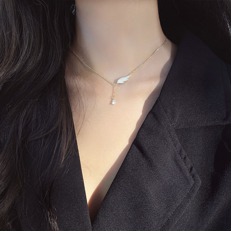 Korean angel wings necklace female summer 2021 new high-end sterling silver sweater chain simple non-fading ins tide